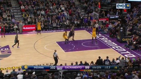 比如1月18日国王与步行者比赛,最后一节25秒时考辛斯攻框被防下来,当时国王落后3分