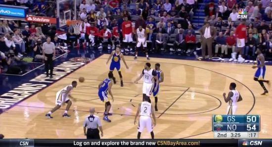 而7秒钟后鹈鹕的进攻已经结束,格林才姗姗来迟出现在三分线,全程勇士被多打少