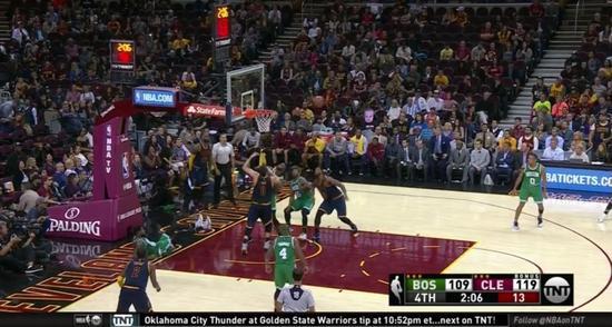 2分06秒勒布朗上篮没有哨之后就没有回防