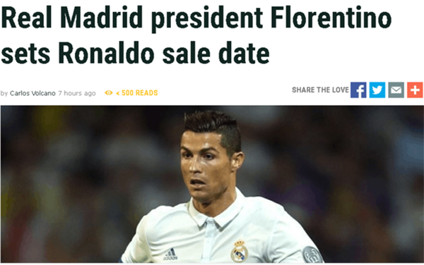 随着大资本的涌入中超的整体水平得到了非常大的提高,虽然许多球迷和媒体认为“金元足球”是一把双刃剑有利有弊,不过金元足球确实为本土带来了亚冠和打开了现在的中超的市场!但中超土豪老板们现在的砸钱手段简直令人发指,在爆出为日本国脚本田圭佑开出2亿人民币的大合同之后这回土豪们把眼光看中C罗,这些土豪准备用3年3亿欧元的大合同挖来C罗,而C罗的回答也显无奈。