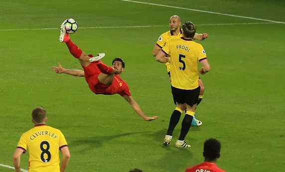北京时间5月2日20:00(英国当地时间1日20:00),2016/17赛季英超第35轮一场焦点战在维卡里吉路球场展开争夺,利物浦客场1比0小胜沃特福德。埃姆雷-詹打入倒钩世界波。利物浦客场3连胜后仍居前三。
