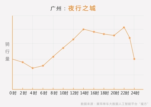 尤其值得一提的是,广州在小长假期间成为"最爱骑"的城市,共享单车骑行量较平日快速增长34%,高峰时段由下午14时一直持续到晚上23时,广州塔、体育西商圈、北京路商圈、荔湾广场等地是热门骑行区域。