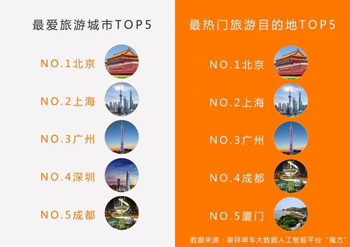 五一期间,许多人趁着难得的假期出门旅游,已在全国50多个城市提供服务的摩拜单车则成为游客们在异地游览城市风景最适合的代步工具。根据摩拜大数据平台"魔方"统计的用户异地骑行数据显示:最热爱旅游的城市TOP5分别是:北京、上海、广州、深圳和成都;最吸引游客的城市TOP5则分别是北京、上海、广州、成都和厦门。