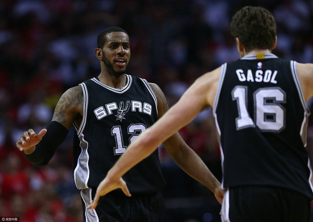 马刺队首发阵容:穆雷、格林、莱纳德、阿尔德里奇、加索尔
