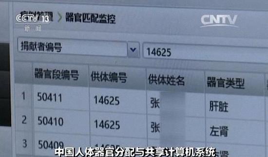 4月19日,通过中国人体器官分配与共享计算机系统显示,此前突发脑内出血离世的张先生捐出的一个肝脏两个肾脏,经过人体器官分配系统自动分配后,成功移植给了河南省的3名终末期器官衰竭患者。人体器官分配与共享系统能在几秒钟内自动运算出最匹配的患者名单,极大的缩短了器官捐献到器官移植中所耗费的分配时间。