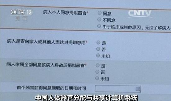 中国人体器官分配与共享计算机系统:据患者病情危重程度分配捐献器官