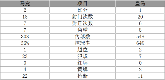 马竞开局踢的非常强势,进攻完全压制而且在身体对抗上也极具侵略性,萨乌尔和格列兹曼的进球一度让马竞看到了翻盘的可能,但伊斯科的进球将马竞的希望浇灭,下半场皇马成功抵御住了马竞的攻势,门将纳瓦斯多次救险。数据来看,皇马射门20比18,射正6比7,控球率64%,这是一场高质量的比赛,皇马最终笑到了最后。