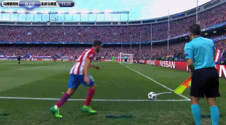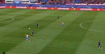 第15分钟,托雷斯禁区内护住皮球,瓦拉内伸出右脚,将托雷斯绊倒在地,马竞获得点球!