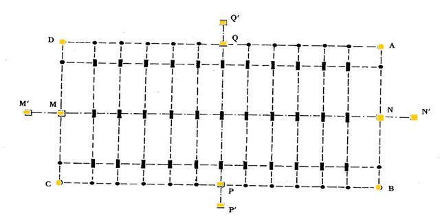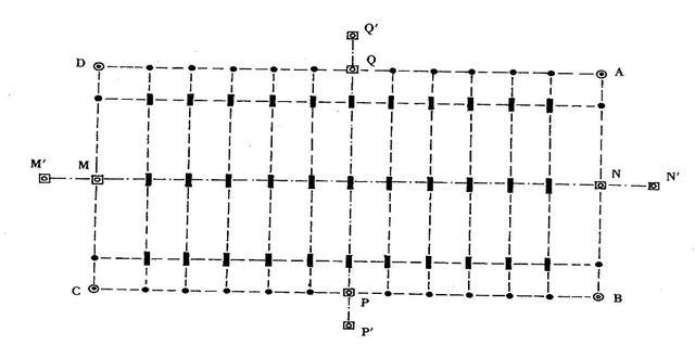 大、中型厂房可沿矩形控制网钉“距离指标桩”,然后根据距离指标桩钉柱列轴线桩。