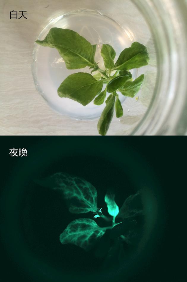 "甚至在普通植物表面喷洒荧光粉来短期出现夜光效果,这些都不是真正的夜光植物。而我们培育的这株植物则完全不同,它可以在黑暗条件下持续自主发光,亮度可以达到星光的水平,能够照亮一定的范围。"