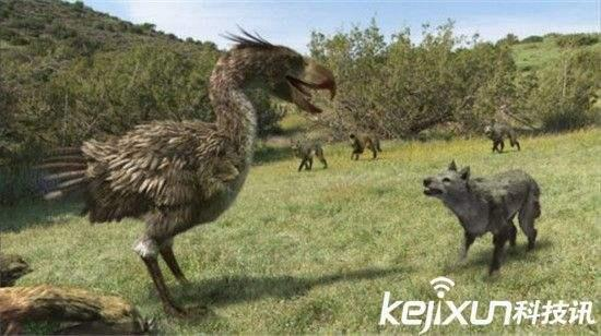 骇鸟又名恐怖鸟,鸟型肉食类动物,跟剑齿虎同一个时期,它跟剑齿虎一样是独居型动物,天敌是狼群,生存于距今2700万年到150万年间,它们约有1-3米高。恐怖鸟的腿骨坚硬、肌肉强壮,可以完全击碎中等大小猎物的骨骼,然后慢慢地吸食猎物骨骼中富含营养的骨髓。奔跑速度达到90公里!