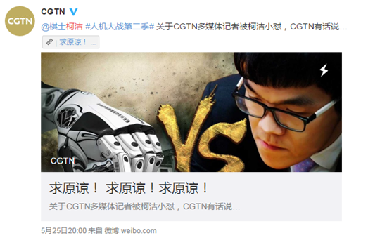 今天在柯洁的赛后新闻发布会上,我们CGTN的多媒体记者因为用英语提问,被柯洁怼了,被怼了,怼了,了…