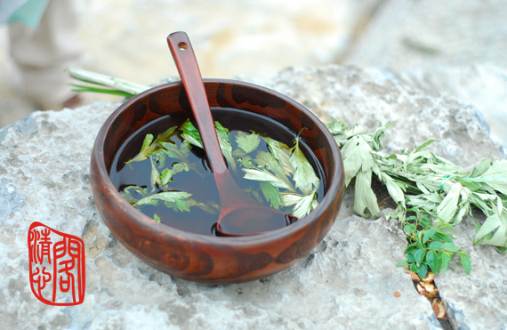 端午日洗浴兰汤是《大戴礼》记载的古俗。但这里兰不是兰花,而是菊科的佩兰或草药,有香气,可煎水沐浴。《九歌·云中君》亦有“浴兰汤会沭芳”之句。《荆楚岁时记》:“五月五日,谓之浴兰节。”《五杂俎》记明代人因为“兰汤不可得,则以午时取五色草拂而浴之”。后来一般是煎蒲、艾等香草洗澡。 在广东,则用苦草麦药或艾、蒲、凤仙、白玉兰等花草;在湖南、广西等地,则用柏叶、大风根、艾、蒲、桃叶等煮成药水洗浴。不论男女老幼,全家都洗,此俗至今尚存,据说可治皮肤病、去邪气。