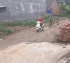 我挺佩服后面的哥们,明知车这样了居然还敢骑