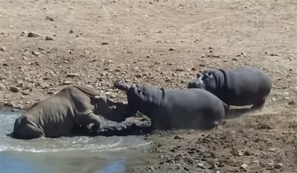 南非犀牛因抢占水源 被河马推到水中活活淹死
