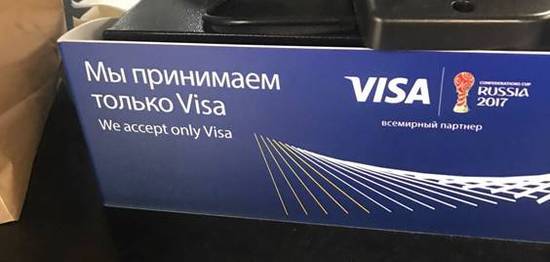 除此以外球场内还有官方商店出售联合会杯相关周边,T恤帽子围巾球衣应有尽有。但是需要注意的是,因为VISA是世界足联唯一的金融赞助商,所以球场内购买食物饮料和纪念品都只能使用VISA信用卡或者现金付款,其他信用卡无法使用,从体育商业赞助的角度来说这是一个非常成功的案例了。
