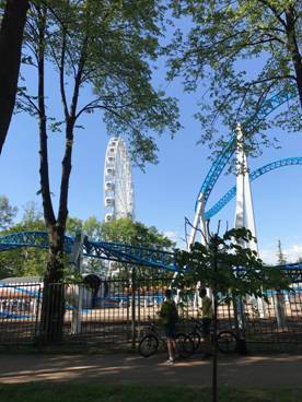 到达球场的主要方式是地铁,下地铁之后需要穿过一个漂亮的大公园,宽阔的步行道上有很多志愿者指路,旁边是一个占地面积很大的游乐场,二狗走在路上听着过山车上人们的尖叫声,表示非常想去坐!步行两公里之后,崭新的圣彼得堡体育场就在眼前,体育场前面有一个宽阔的广场,比赛开始前,有很多肤白貌美大长腿美到窒息的毛妹在这里唱歌跳舞,绝对不容错过!