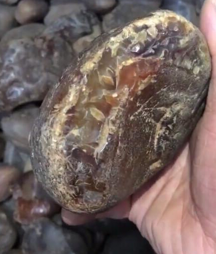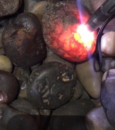 男子随后看到这块石头内部透着光,而且呈红色,十分奇特,男子看到这样一幕,顿时兴奋不已,赶忙将这块石头捡了起来。