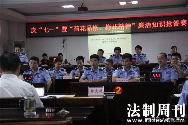 活动在庆七一暨“荷花品格、梅花精神”抢答赛时推向了高潮,由基层8个党支部派出的队伍,经过必答、抢答、风险题三个环节角逐出一二三等奖,其中穿插五次观众互动环节。经过激烈的比赛,第四小组一大队支部夺得第一名。整个比赛过程紧张而热烈,不时爆发出阵阵掌声。