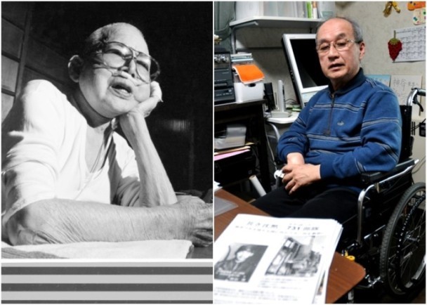 神谷则明(右)决定出书,记下父亲(左)向他口述关于731部队的事。