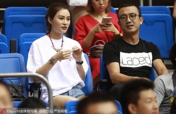 李根妻子到场观战