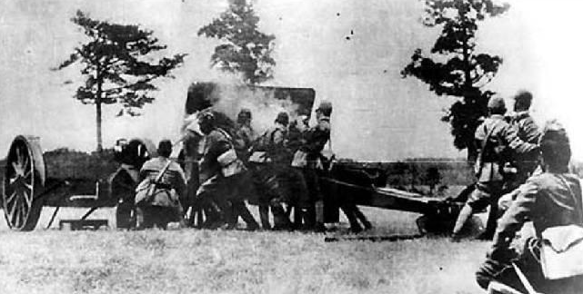 图为日军炮轰宛平城。