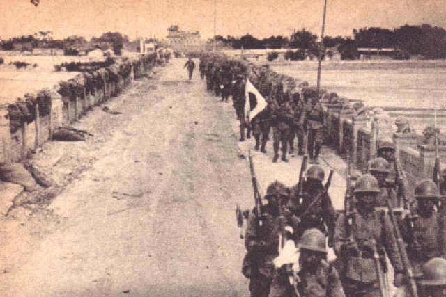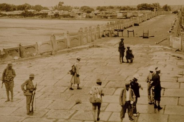 中国军队撤退后,日军通过卢沟桥。