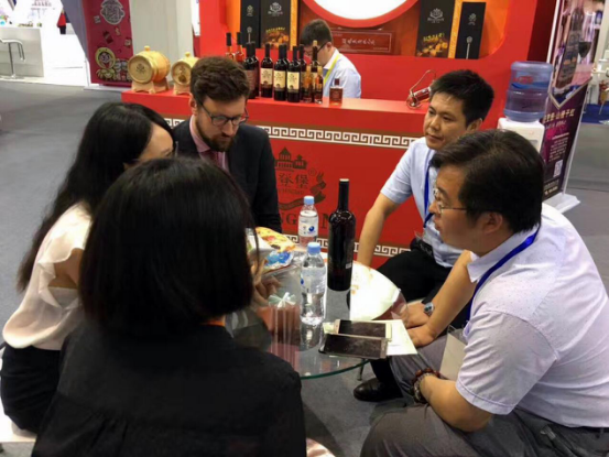(在此次参展企业中,山东皇尊庄园山楂酒有限公司与维罗尼克·枫丹副主席、法国驻华大使馆农业事物副参赞在食品安全和产品出口等方面达成了交流合作意向)
