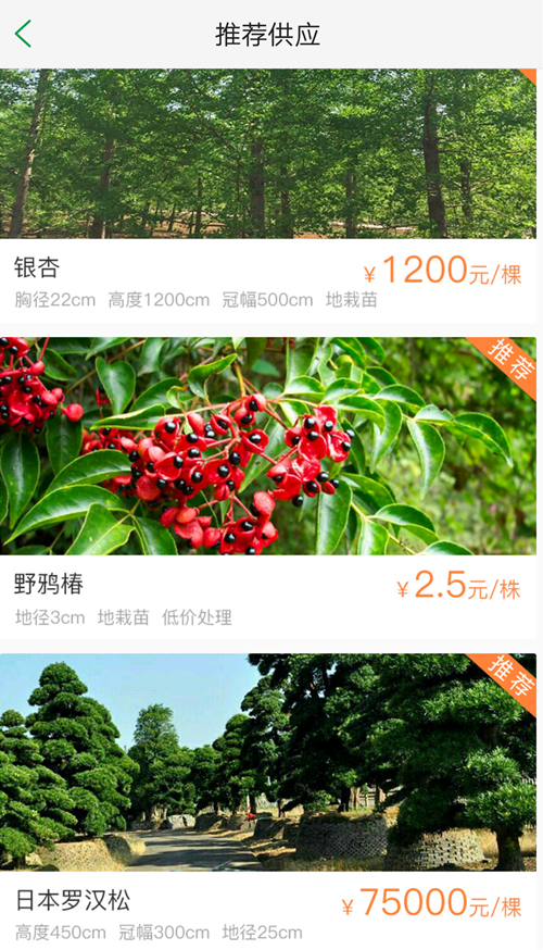 3.选择“供应推荐”,快速了解苗木宝为您推荐的野鸦椿优质苗源。