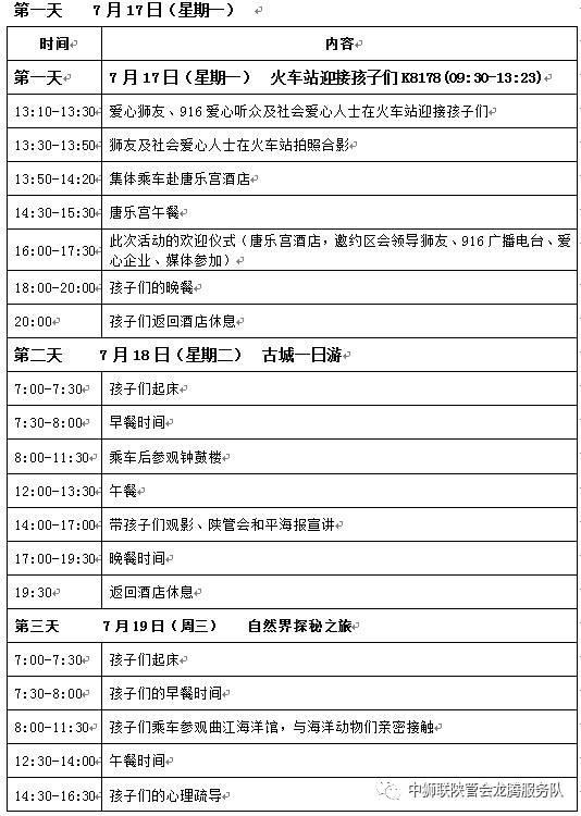 今年2017第七届《山里孩子看古都》大型公益活动今年安排100个山里孩子到古城西安来。以下今年的行程安排 :