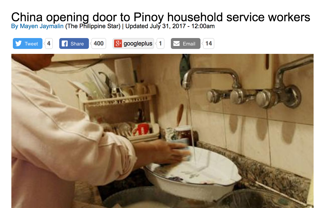 [分享]“开放菲佣”只是以讹传讹,中国家政要靠本土发展