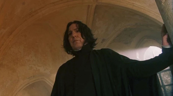 电影中扮演的斯内普教授以严肃著称。在第一部电影中,他大步走到讲台前面,用一段严肃的独白奠定了斯内普令人生畏的角色。并且嘲笑哈利是“我们的新名人”。