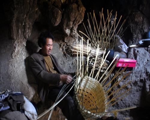 无家可归的他,从此就住在了附近的山洞里,过着独居的生活,靠着编竹篓为生。