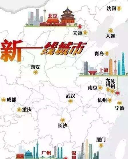 “新一线”城市是相对于一线城市(北上广深)衍生出的新概念,这一概念由媒体于2013年首次提出,按照商业资源集聚度、城市枢纽性、城市人活跃度、生活多样性和未来可塑性5个维度选出。