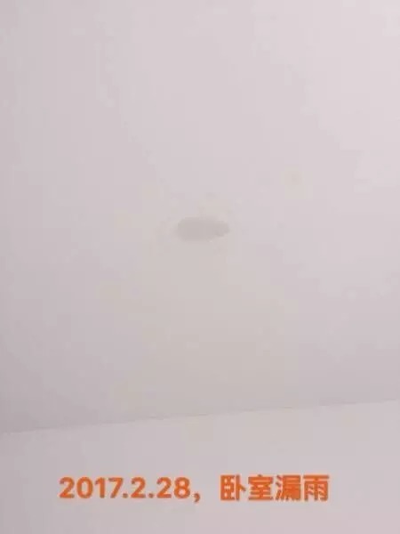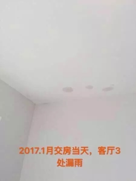 第一次漏雨(2017年1月):交房当天,客厅三处漏雨。