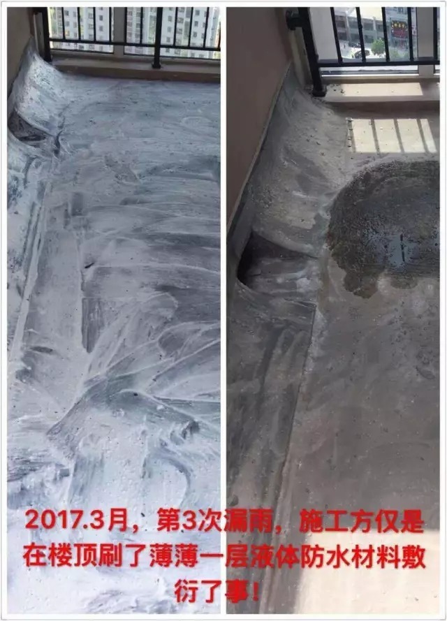 交房后的前三个月,每月都要漏一次雨。真是无语啊