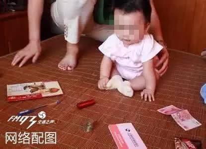 家长们一定要注意,像硬币、纽扣、电池等危险物品,一定要放在远离孩子的地方