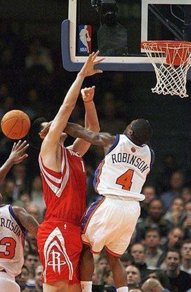 2米26的姚明在NBA也算是高人一等了,但是却被身高只有1米75的矮个子内特罗宾逊封盖,这家伙比姚明足足矮了51公分,这次封盖让姚明颜面扫地,罗宾逊也成就了人生的高光时刻。