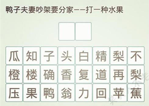 鸭子夫妻吵架要分家,打一种水果?