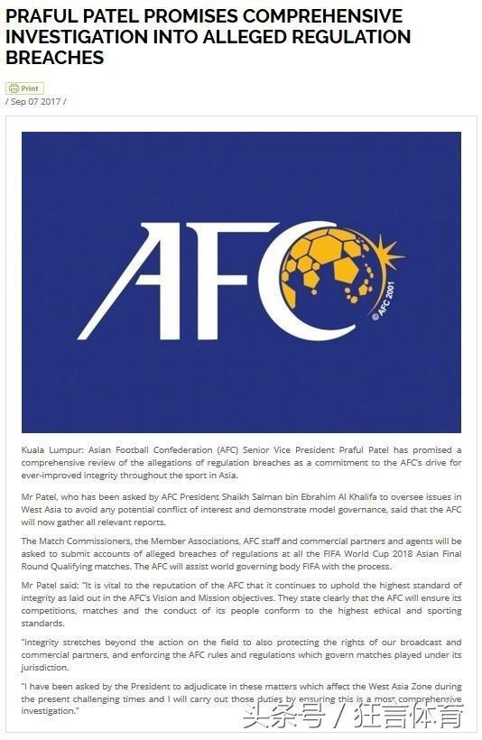既然是有问题,那就得调查,非洲的南非和塞内加尔都被国际足联勒令重赛了,近日亚足联还真的会对12强赛最后一轮的6场比赛的某些场次展开调查,是否有违规行为。只是最后一轮,而伊朗指责的所谓历史性错误亚足联并不会调查。