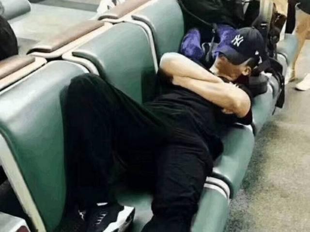 在机场的时候,坐在椅子上也能马上进入梦乡。