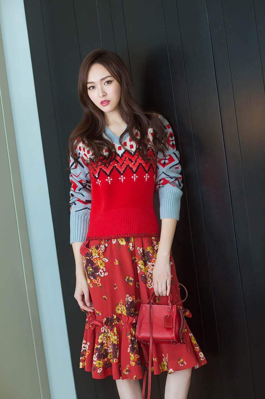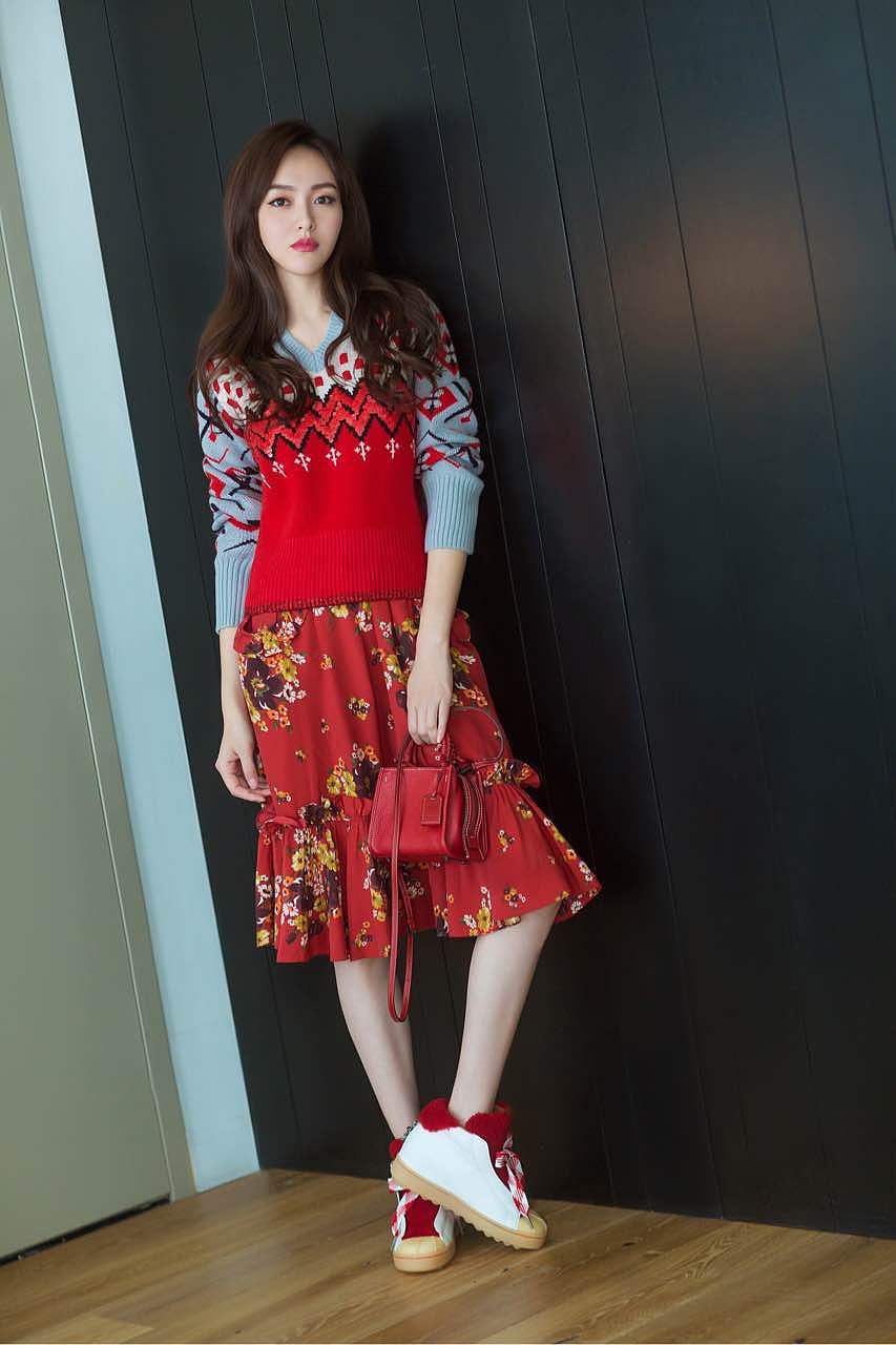 性感大长腿,而是身穿红蓝色毛衣,搭配碎花裙,长发妩媚迷人。此套装扮让桃子妹只能从心底里佩服不玩腿的唐嫣照样美呆!