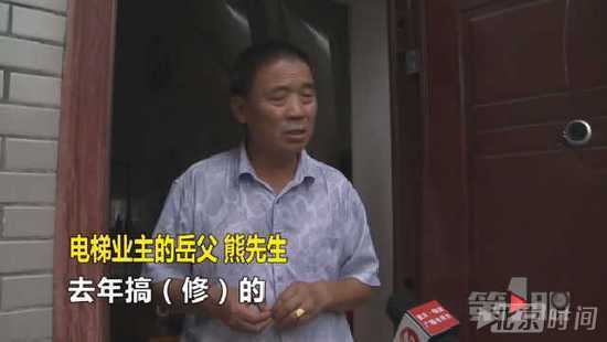 记者来到六楼,在门口等候了半个多小时,都没能见到这户的业主。在小区居民的带领下,记者找到了电梯业主的岳父熊先生。熊先生说,这栋楼房是还建房,总共有七楼,没有电梯。六楼和七楼是一套跃层,自己的女婿和女儿就住在里面。电梯是去年开始修建的,完工已有数月。说起修电梯的目的,熊先生说主要是女婿嫌爬楼梯太累。