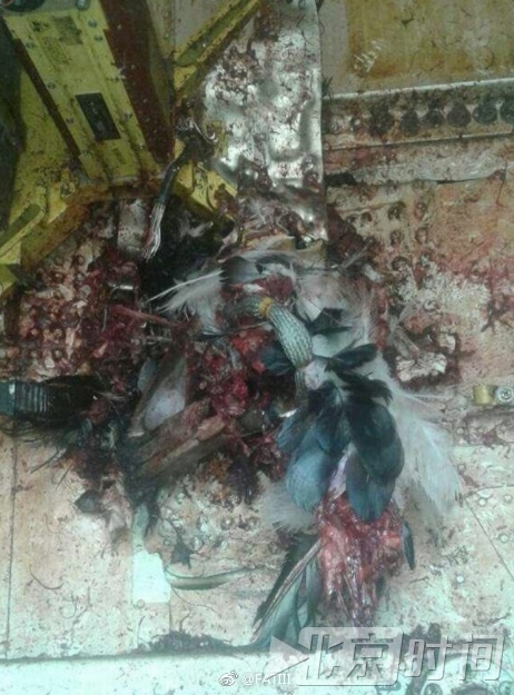 而那只可怜的小鸟也被撞得尸骨粉碎,羽毛和血肉散落一地,现场相当可怖。