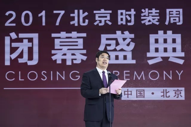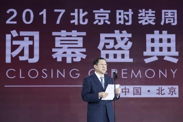 北京市经济和信息化委员会党组书记、主任张伯旭在闭幕式上讲话。张伯旭指出,2017北京时装周作为北京国际设计周“时尚北京”板块的重要组成部分,集中展示了北京时尚产业的发展成果,实现了模式创新、跨界联动、资源共享,是推进北京服装纺织产业转型升级,实施北京时尚产业“三品”战略的重要举措。他强调,要通过北京时装周的舞台和平台,促进北京时尚产业通过设计、流通和消费端对传统经济进行提升,大力发展以时尚设计为核心的生产性服务业,关注高端科技和多元审美引领时尚产业发展的新模式,推动时尚产业与相关产业深度融合,聚焦发展高端时尚产品和个性创意产品,打造以智能制造为基础、以国际品牌为标志的时尚产业体系。他希望,北京时装周要在依托和传承北京文化、展示首都文化底蕴的基础上,不断发展创新,与国际接轨,与世界一流时装周对标,逐步与国际和国内各大时装周形成良好互动。