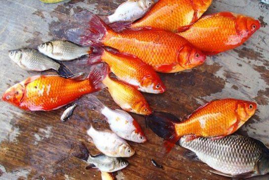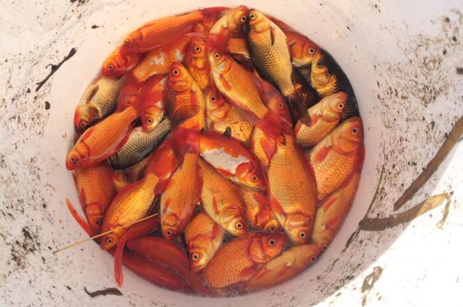 大约三四年前,有人在加拿大小城圣艾伯特放生了一对儿可爱的小金鱼。未曾想,如今两条变成了千条,而且这些金鱼还像成了精一样,体型大的不像话。现在,当地人正与成群的“怪兽金鱼”展开殊死斗争。