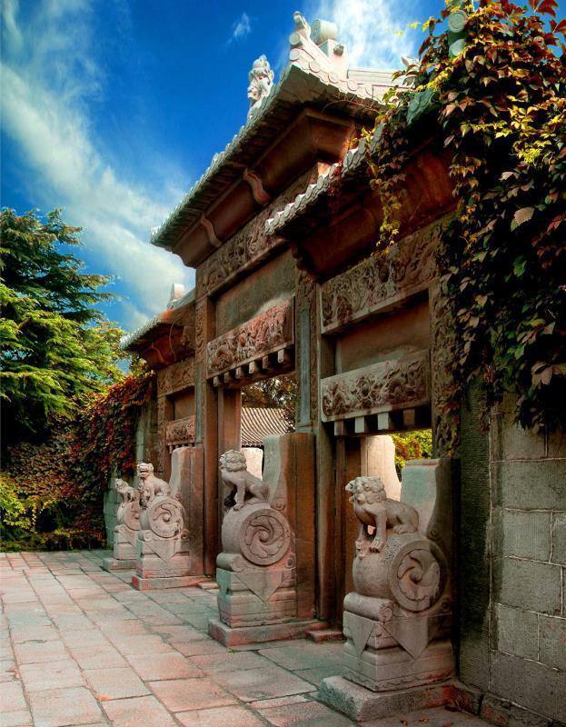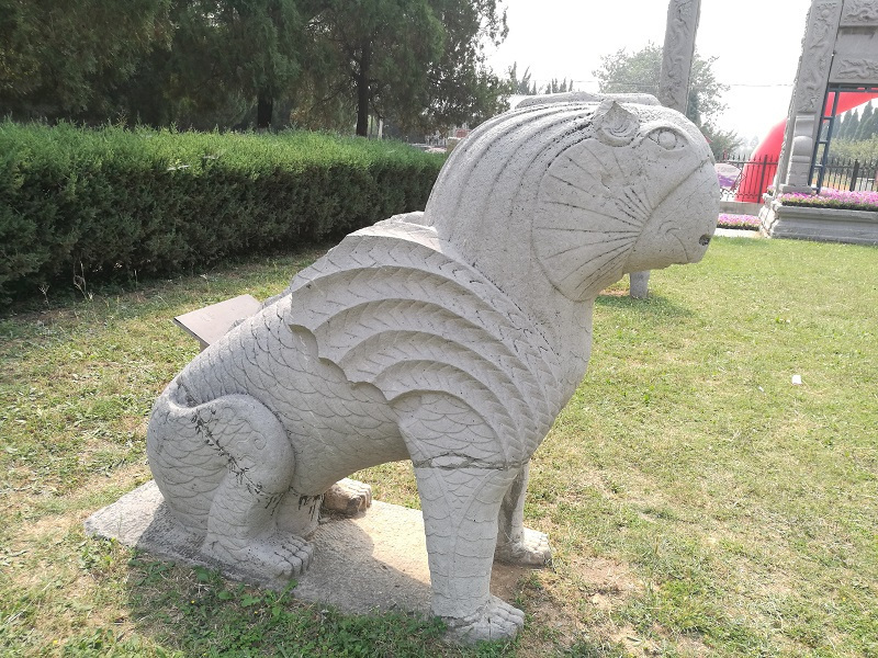 整个陵区坐北朝南,石坊是陵墓的起点。石坊三门四柱,两侧各有一望柱,通体雕满二龙戏珠图案,且雕工精细,呈现出一派皇家气魄。石坊以北是160米长的神道,为通向祭殿和宝城的导引大道。