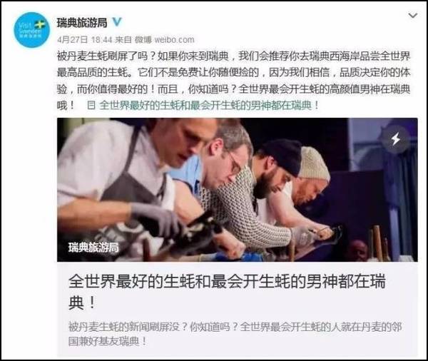 看着这个话题被炒热,瑞典眼红了,于是瑞典旅游局又发了一个类似的话题: