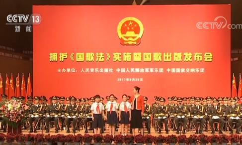 据央视新闻30日报道,为庆祝《中华人民共和国国歌法》的诞生与正式实施,昨天,人民音乐出版社与中国人民解放军军乐团、中国国家交响乐团联合主办的“拥护《国歌法》实施暨国歌出版发布会”在解放军军乐团军乐厅举行。