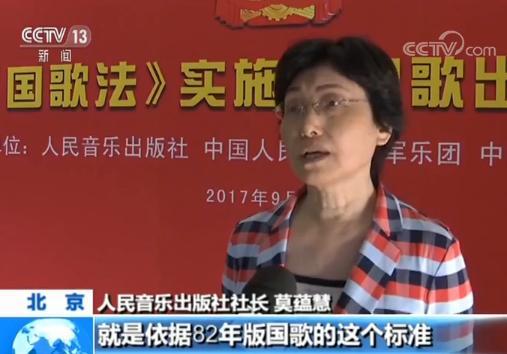 人民音乐出版社社长 莫蕴慧:现在这个版本就是依据82年版国歌的这个标准,简谱和五线谱分开排的,最后以我们乐谱出版的标准把它呈现出来。